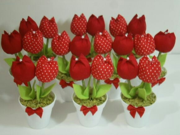 Estos tulipanes resultan hermosos para decorar tu hogar o para usarse como centros de mesa en una celebración especial. Hacer estos hermosos tulipanes de tela es mas sencillo de lo que parece, ya ni siquiera necesitas un molde específico. Puedes crear tantos tulipanes como quieras y que además combinen en color y diseño con los elementos decorativos de una habitación, como por ejemplo cortinas, cojines, manteles, etc.